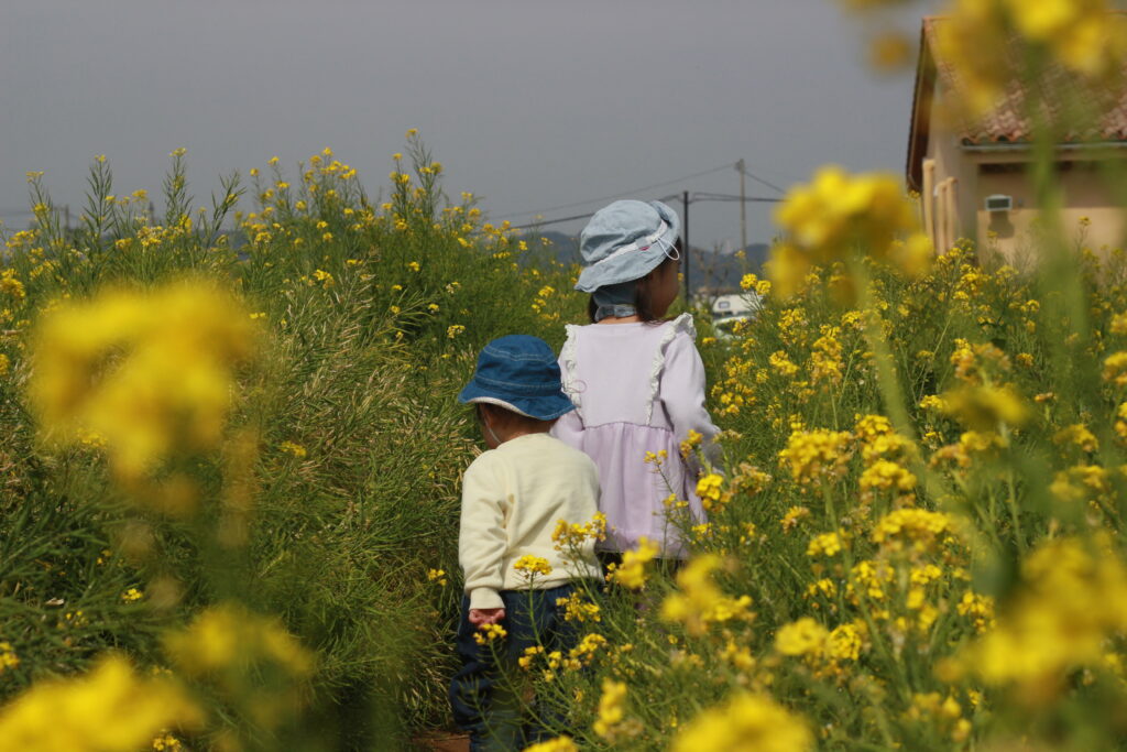 話は逸れますが、大人になって普通に立つと菜の花の高さなんてあまり気にしなかったですが、子どもの目線になってみると、「菜の花ってこんなに高かったんだ…」と改めて気付かされました。これも子どもと遊ぶときならではの新しい発見ですね。